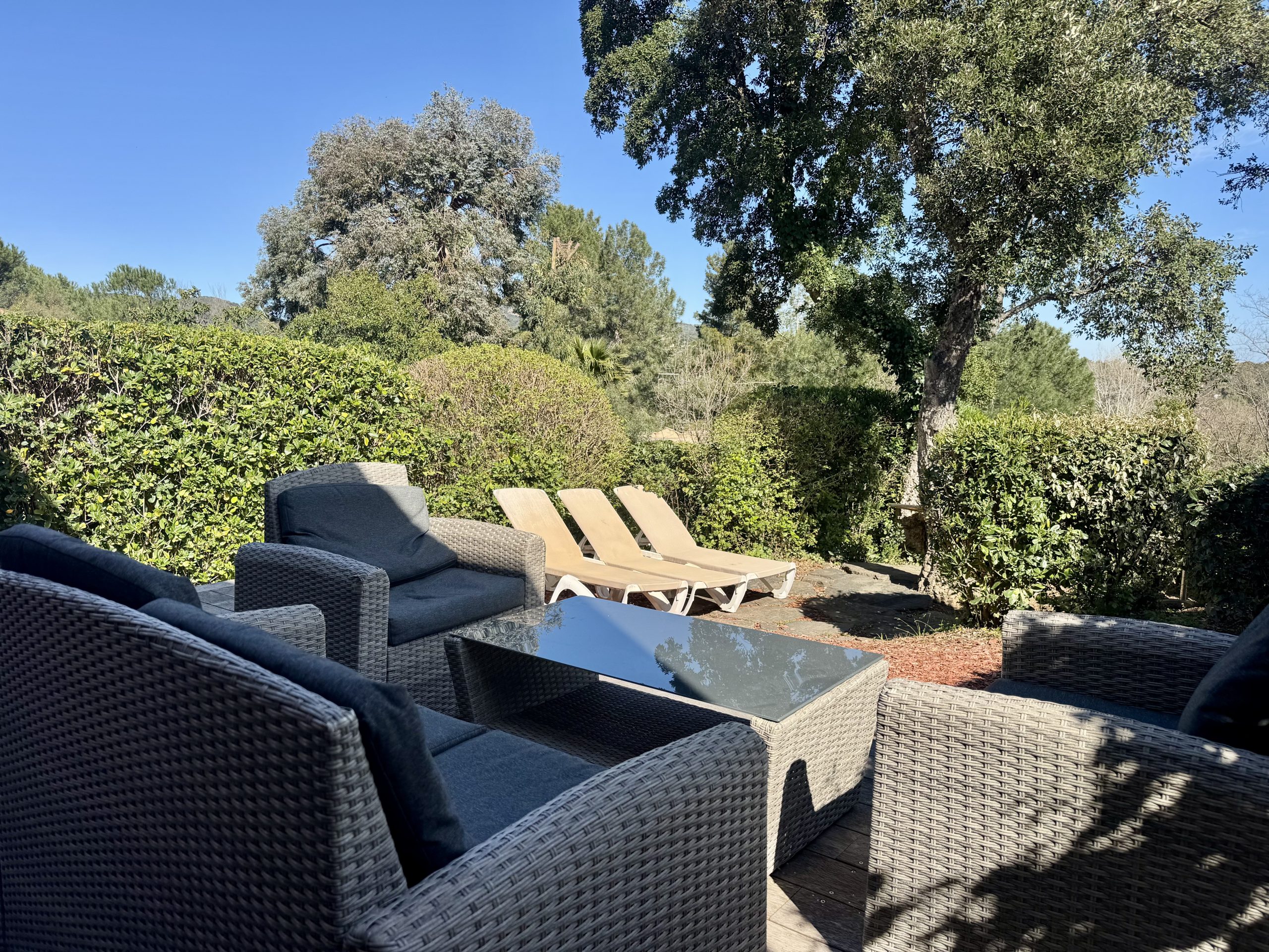 Emplacement : Située au cœur du domaine sécurisé Les Restanques du Golfe de Saint-Tropez à Grimaud, à quelques pas de la mer, au milieu d’un écrin de verdure.