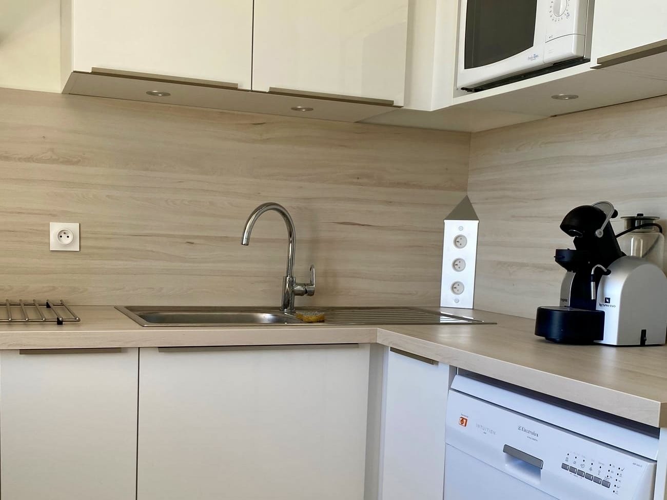• Une jolie cuisine équipée moderne avec lave-vaisselle, four, machine à café…