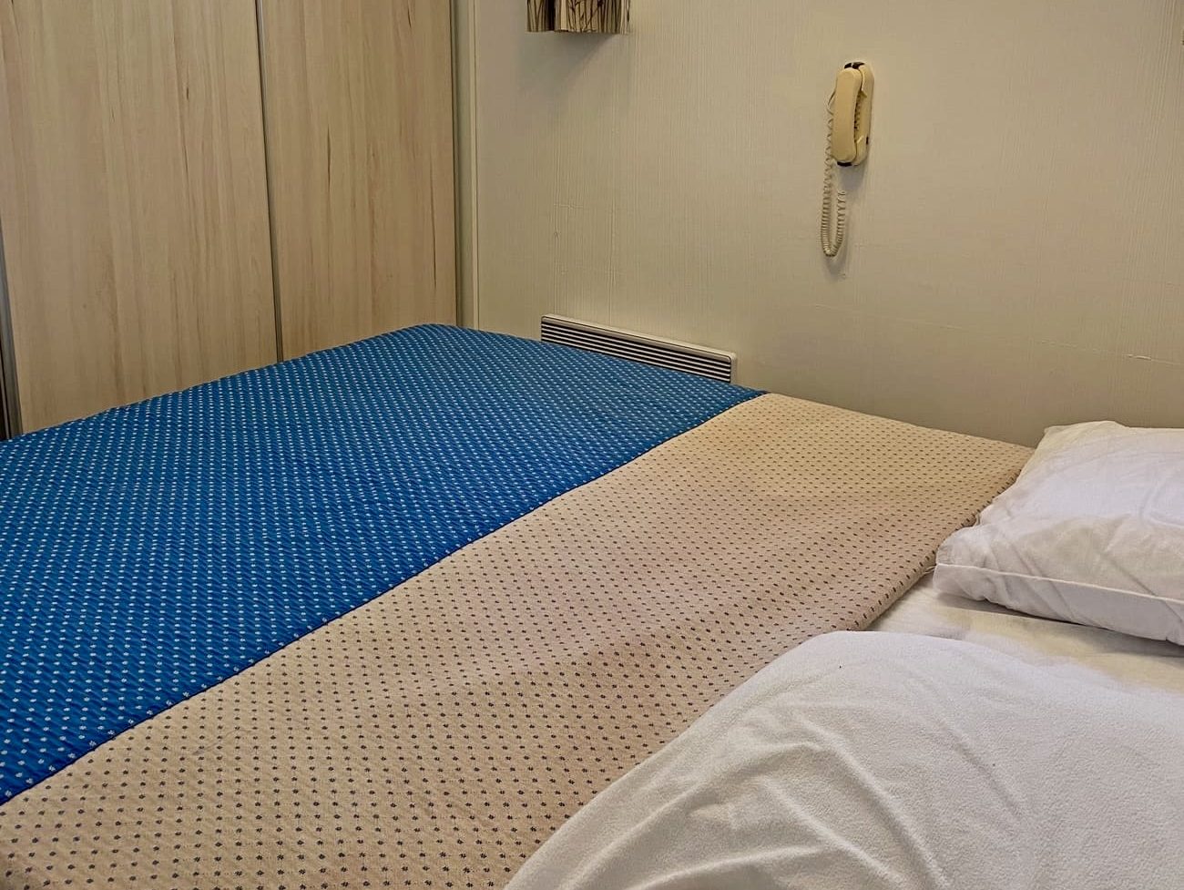• Une chambre avec un lit double et grand placard