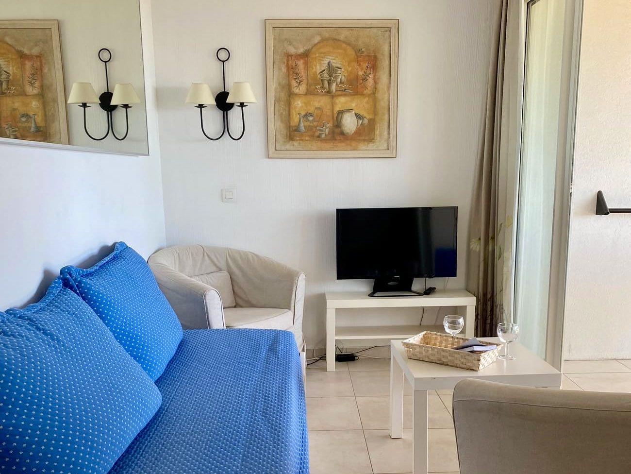 • Séjour avec une banquette lit et TV.