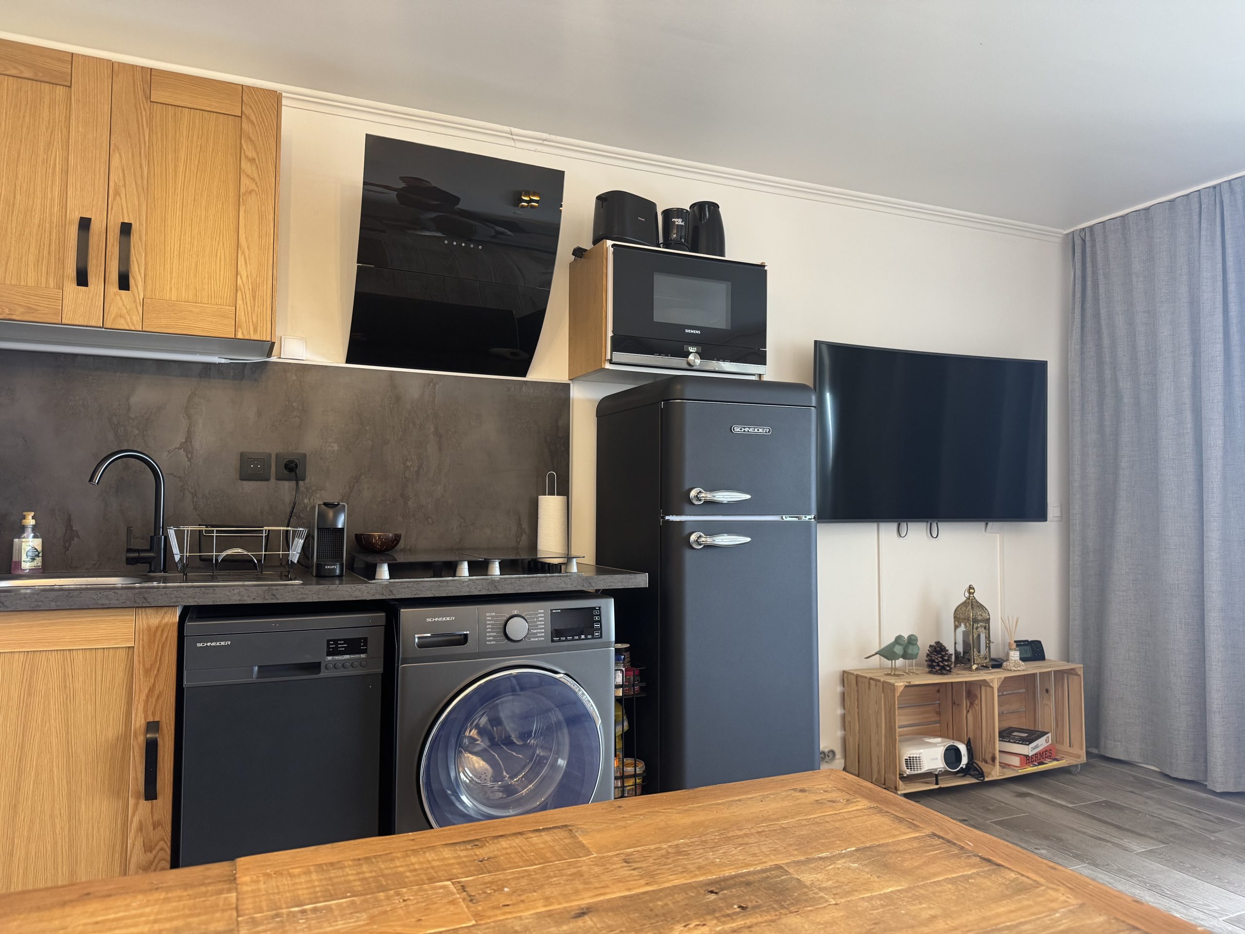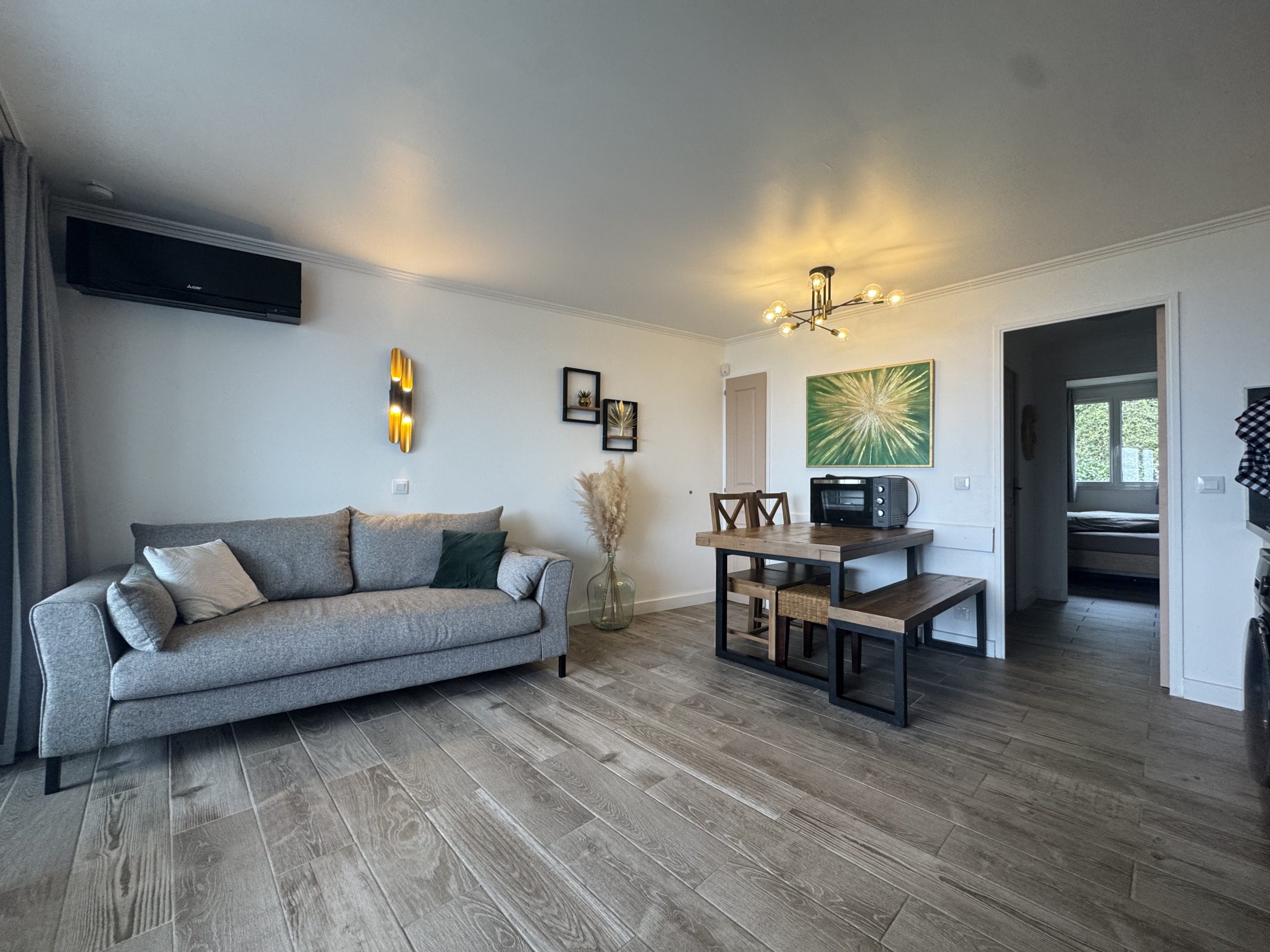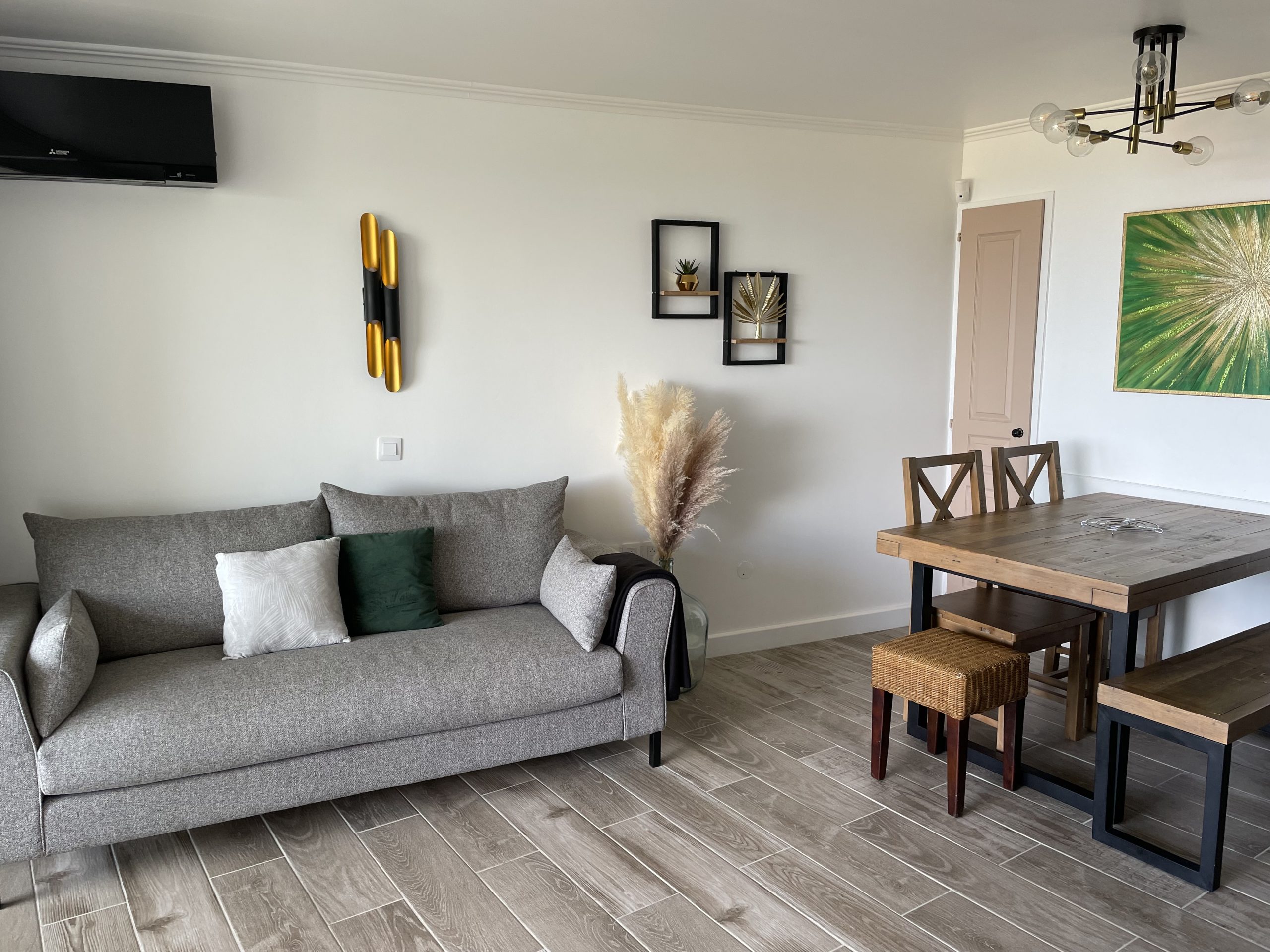 Cette location d’appartement avec vue mer a été entièrement rénovée pour offrir confort et modernité.