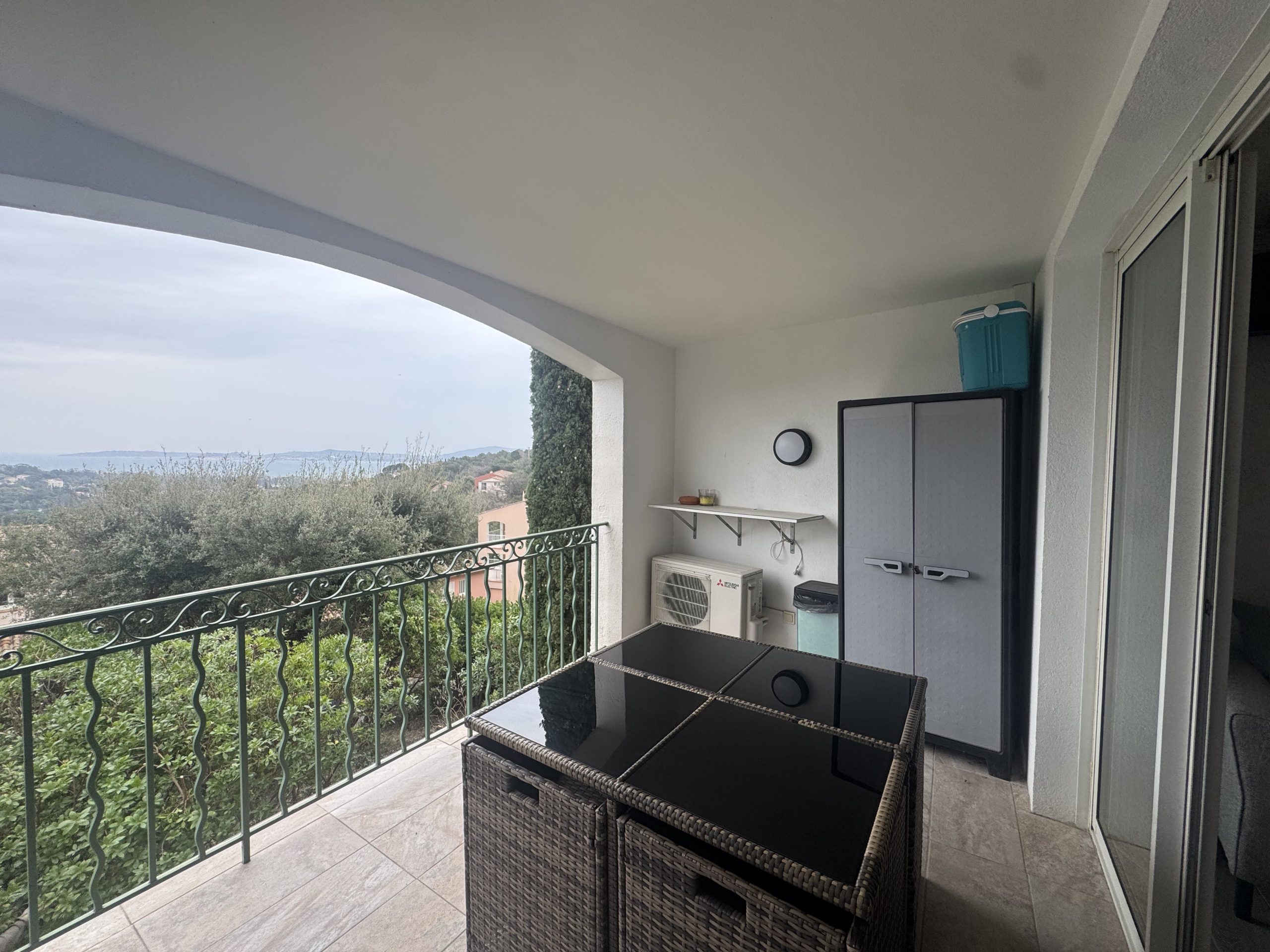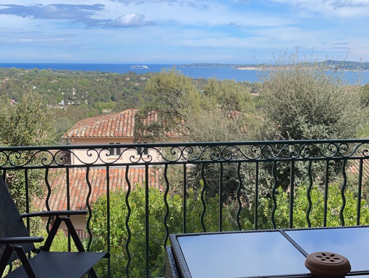 Depuis la terrasse et le salon, vous profitez d’une superbe vue mer sur le Golfe de Saint-Tropez, dans un environnement calme et sécurisé à seulement quelques minutes des plages.