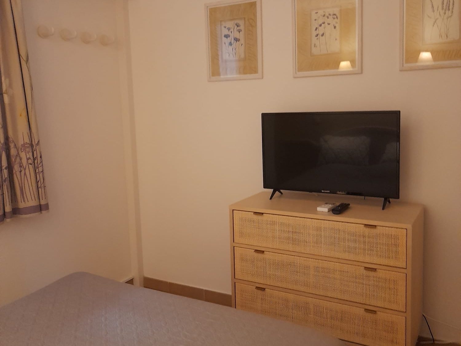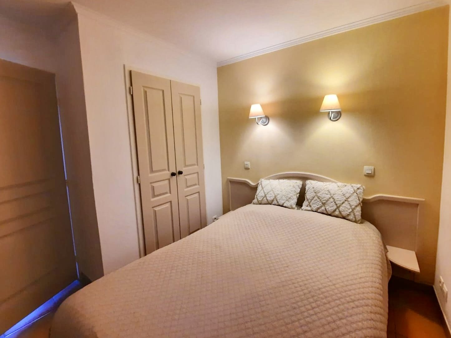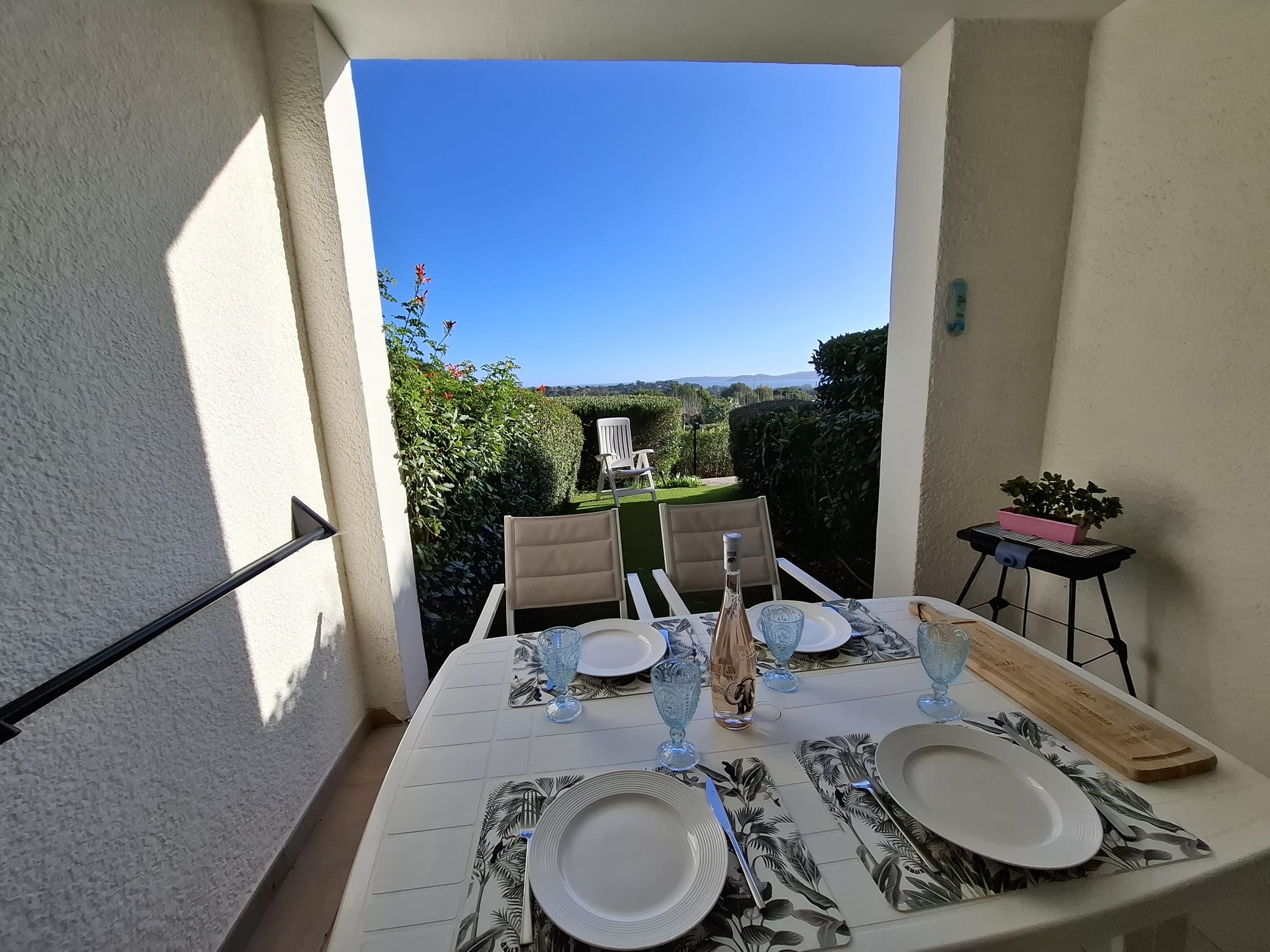 L’appartement comprend également une chambre avec un lit double, un placard et la climatisation pour des nuits paisibles. La salle de bain est équipée d’un sèche-cheveux, et un WC indépendant. Une machine à laver est à votre disposition pour plus de confort lors de votre séjour. Profitez de la terrasse vue mer avec table et chaises, ainsi que d’un jardinet pour des moments de détente en plein air.